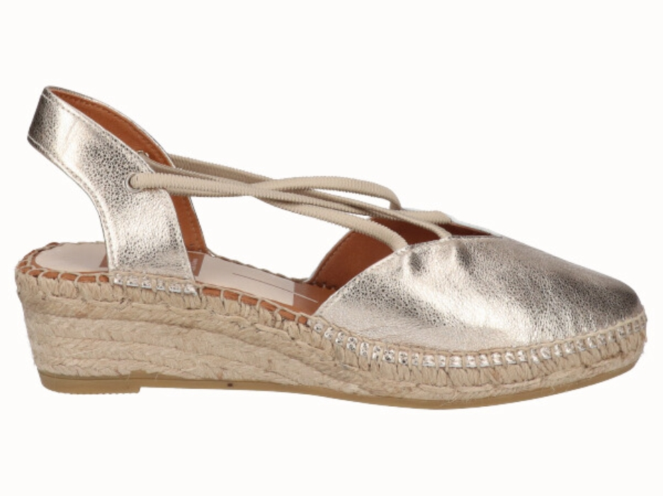 Alpargata con cuña baja de yute de 4 cm, fabricadas en piel serraje de la mejor calidad o piel metalizada en oro y con plantilla de piel acolchada. Incorpora elásticos cruzados para un ajuste óptimo. Escote en "v" para ofrecer una imagen estilizada de nuestros pies. Comodidad, durabilidad y versatilidad de un calzado 100% español. Cuenta con la garantía de calidad de Alpargatas Viguera.