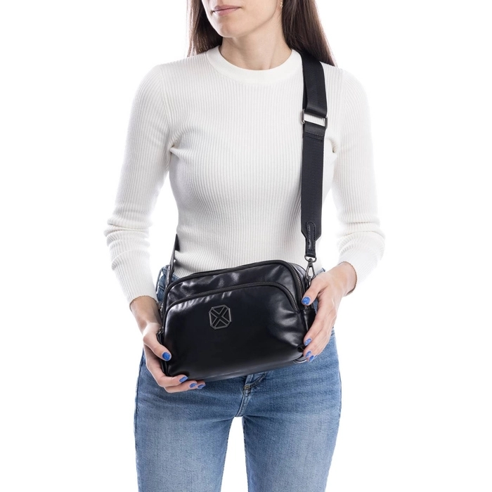 Bolso pequeño bandolera fabricado en un material que imita la piel. Con asa regulable, se convertirá en tu mejor aliado en cualquier ocasión. Este bolso no solo cumple la función prática, si no que se trata de un elemento clave para dar un toque casual a tus conjuntos de invierno. Perfecto para los que buscan comodidad sin renunciar la elegancia.