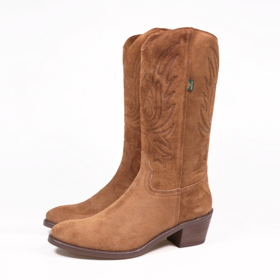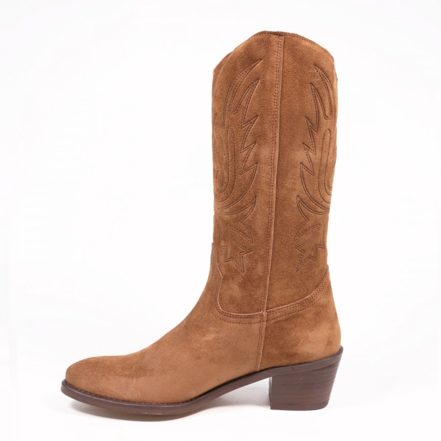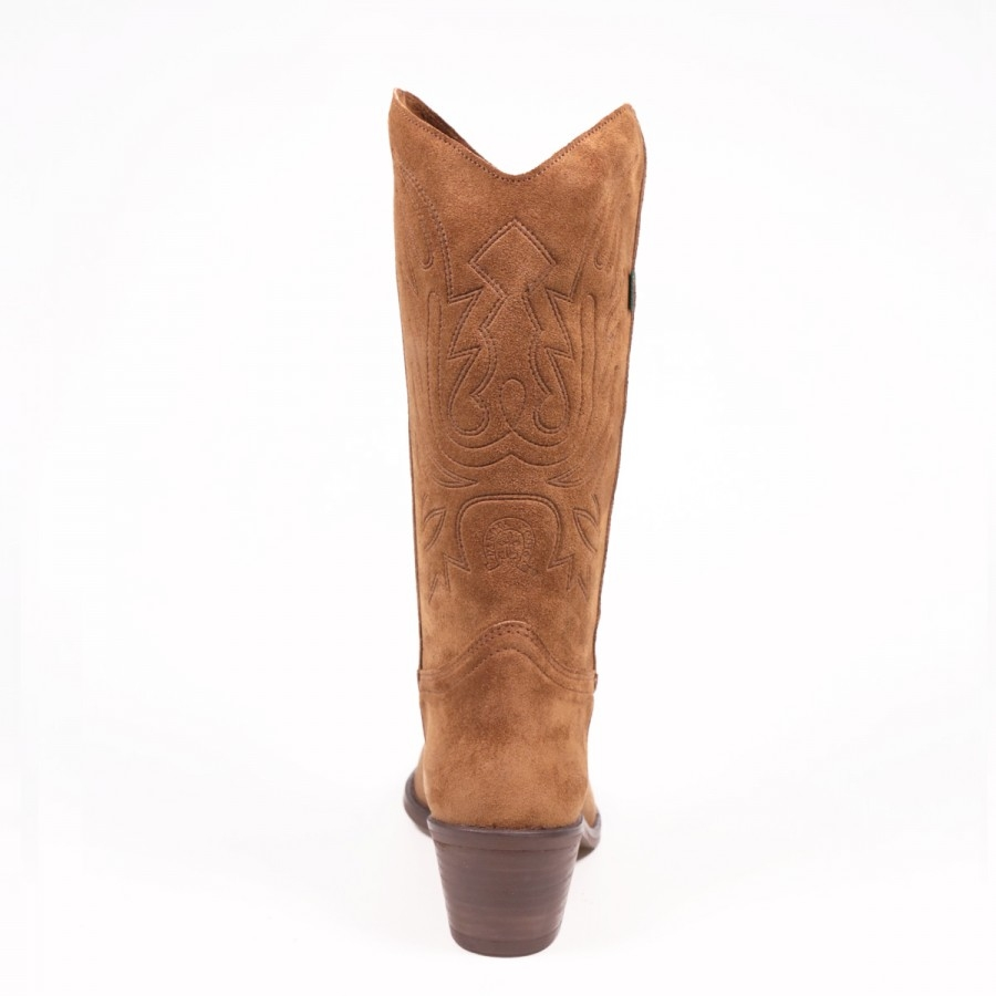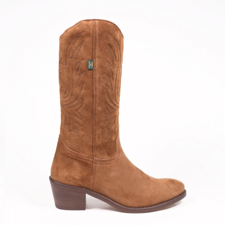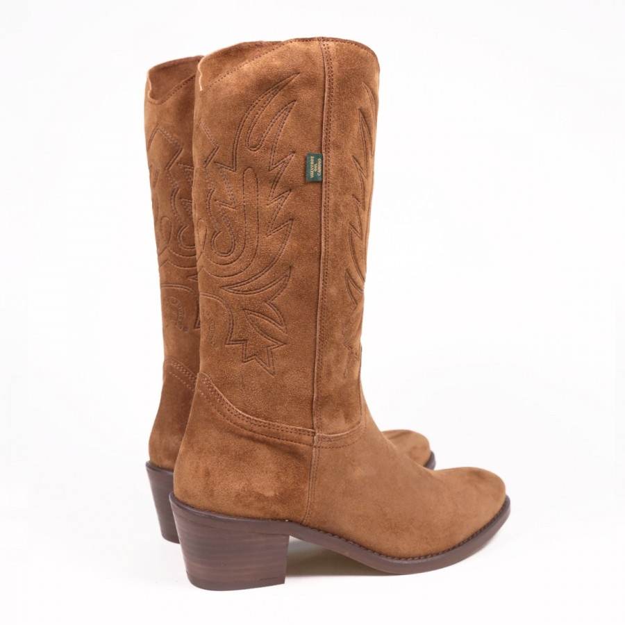 Bota estilo cowboy en piel Oil, color capuccino, con dibujos grabados. 100 % Made In Valverde. Garantía Dakota Boots.