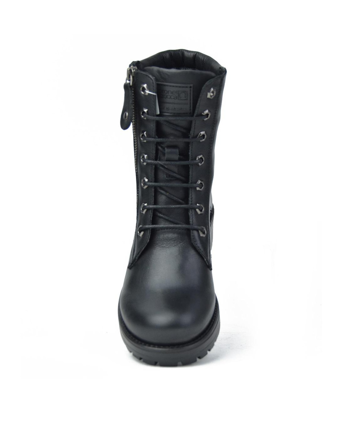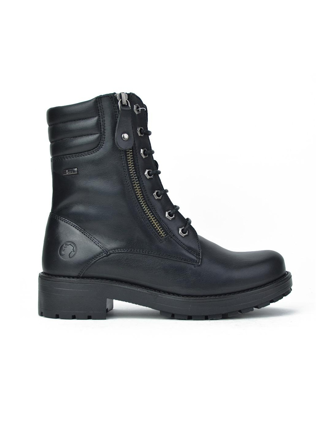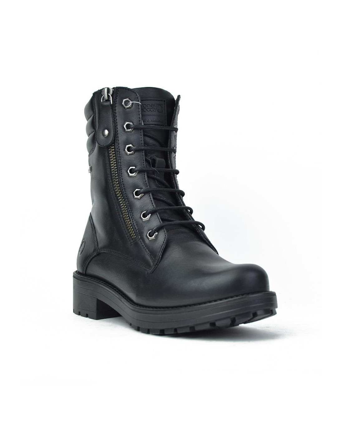 Botas de señora Coronel Tapiocca fabricados en piel negro de vacuno de primera calidad, forro combinado piel vacuno y textil con membrana resistente al agua y tecnología XDRY, plantilla textil extraible termoconformada, caña de 16 cm altura, suela con tacón de 4 cm y plataforma de 2 cm, cierre de cordones y cremallera lateral, fabricado en España. Composición: Empeine: Piel. Forro y plantilla: Textil. Suela: Fibra sintetica. Componente principal: Piel