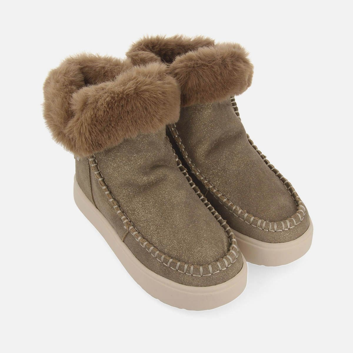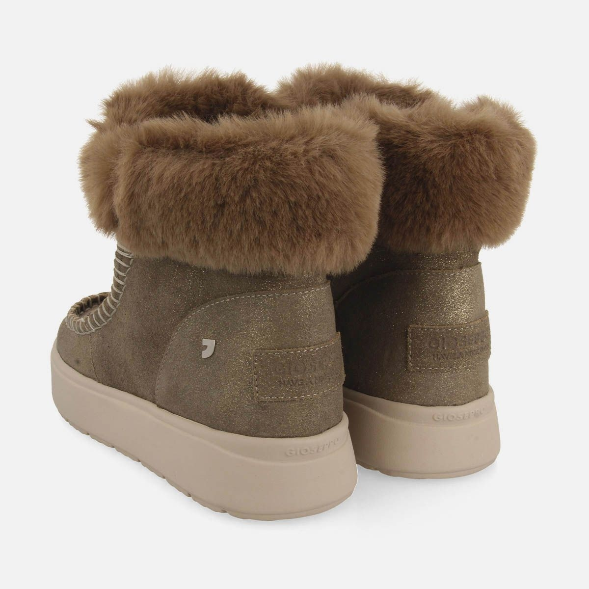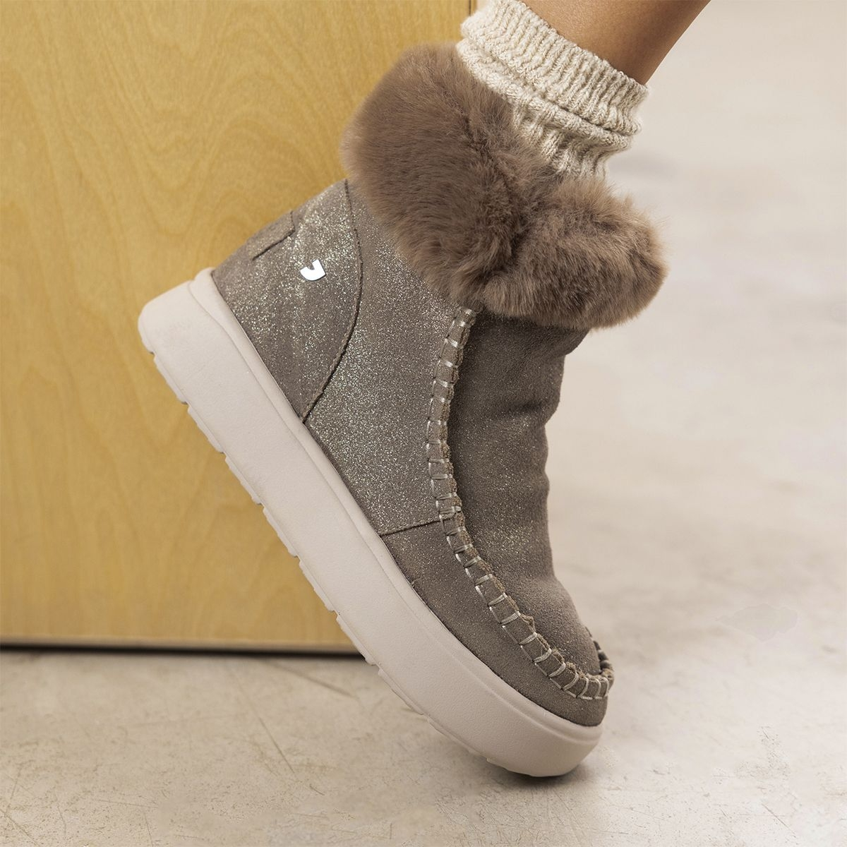 Da la bienvenida al invierno con Gioseppo Woman. Botas color taupe estilo australianas de piel con brillo y forro de pelo. Cuentan con plantilla y forro de poliéster y piso ligero de EVA. ¡Una elección perfecta para el frío!