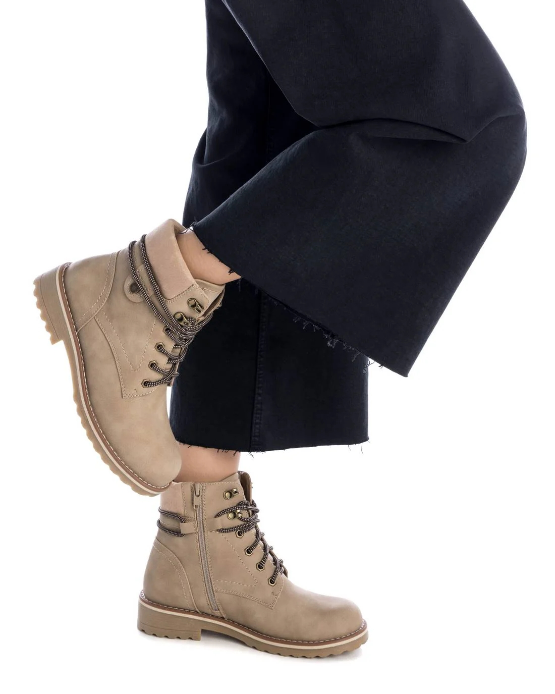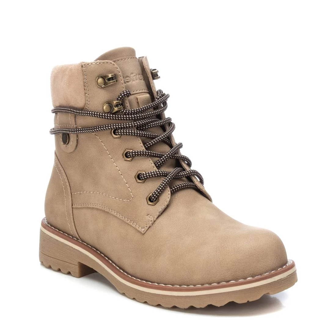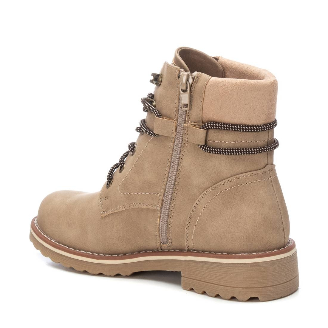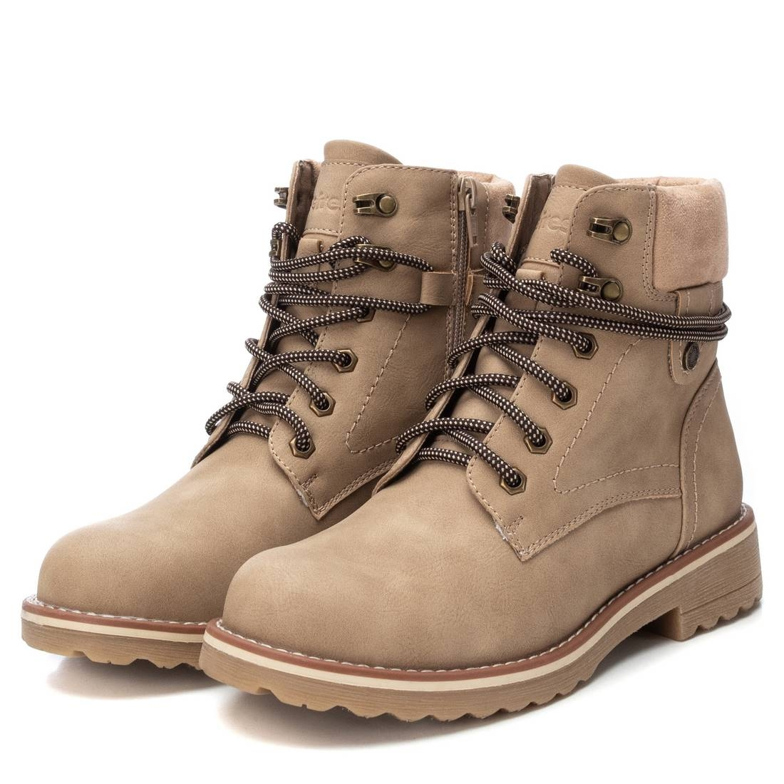 Botín de mujer, de la marca Refresh. Fabricado en un material que imita la piel. Cierre mediante cremallera lateral y cordones para un buen ajuste. Suela track de goma antideslizante. Modelo atemporal, el cual le da un toque casual a tu look. Este modelo ha obtenido el certificado vegano por la organización mundial PETA (Organización de los derechos de los animales).