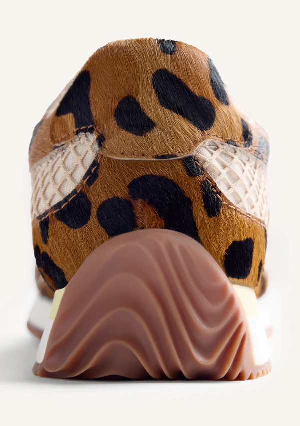 Zapatillas con rejilla superpuesta, piel tipo pelo con estampado de leopardo y acentos de color. Cuentan con plantilla acolchada.