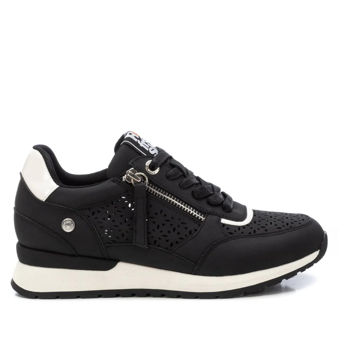 Zapatilla de mujer, de la marca Refresh. Fabricada en material que imita a la piel decorado con troquel floral. Cierre mediante cremallera lateral. Cordones regulables para un mejor ajuste. Suela de goma antideslizante. Este modelo ha obtenido el certificado vegano por la organización mundial PETA (Organización de los derechos de los animales).