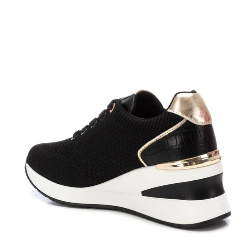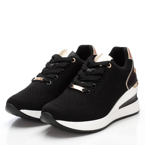 Zapatilla de mujer, de la marca Xti. Fabricada en material textil y detalles en metalizado. Cierre mediante cordones. Cuña con suela de goma antideslizante. Ideal para aportar unos cm sin perder comodidad.