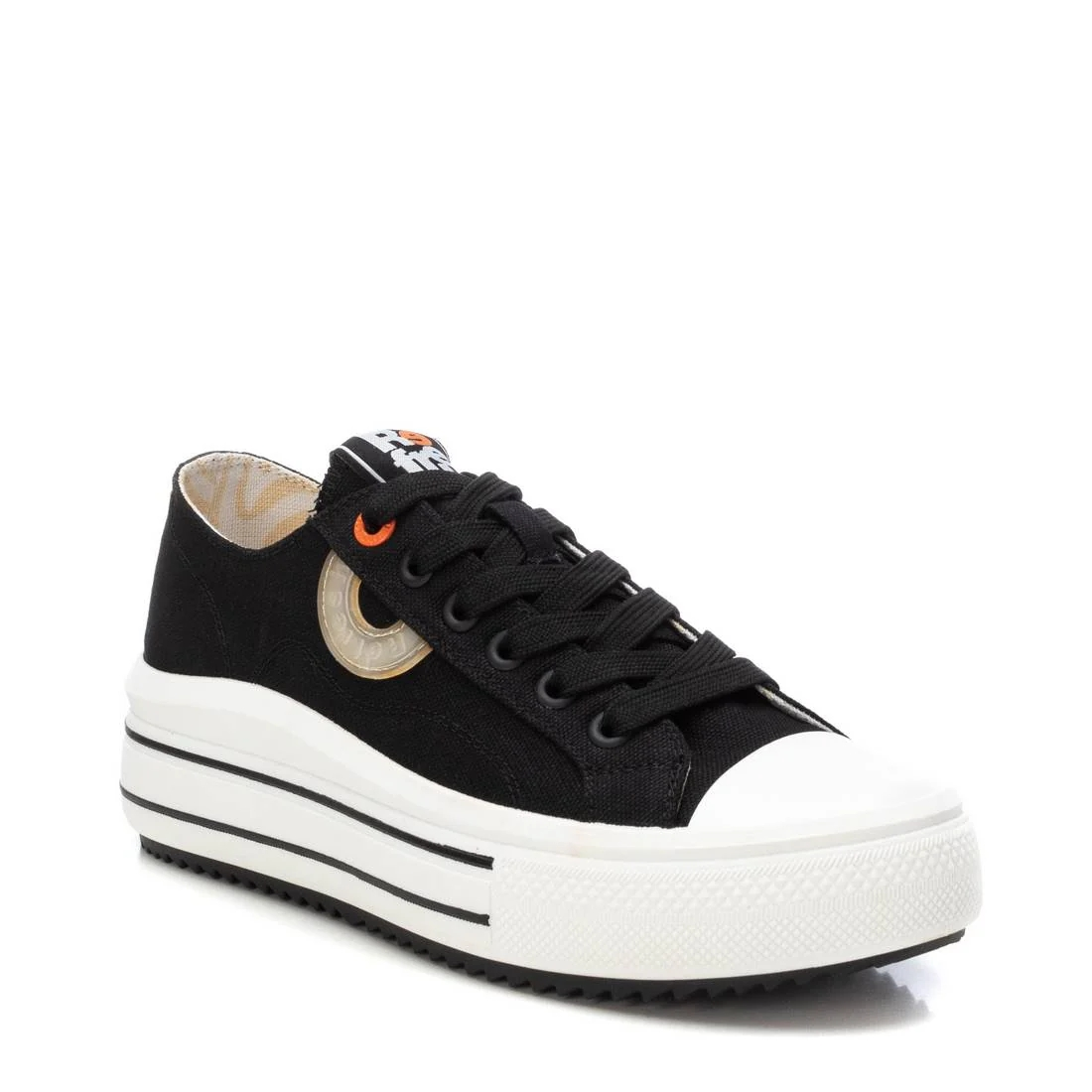 Zapatilla de mujer, de la marca Refresh. Fabricada en lona. Forro decorativo con animal print. Primer ojete con el color representativo de la marca. Cierre mediante cordones