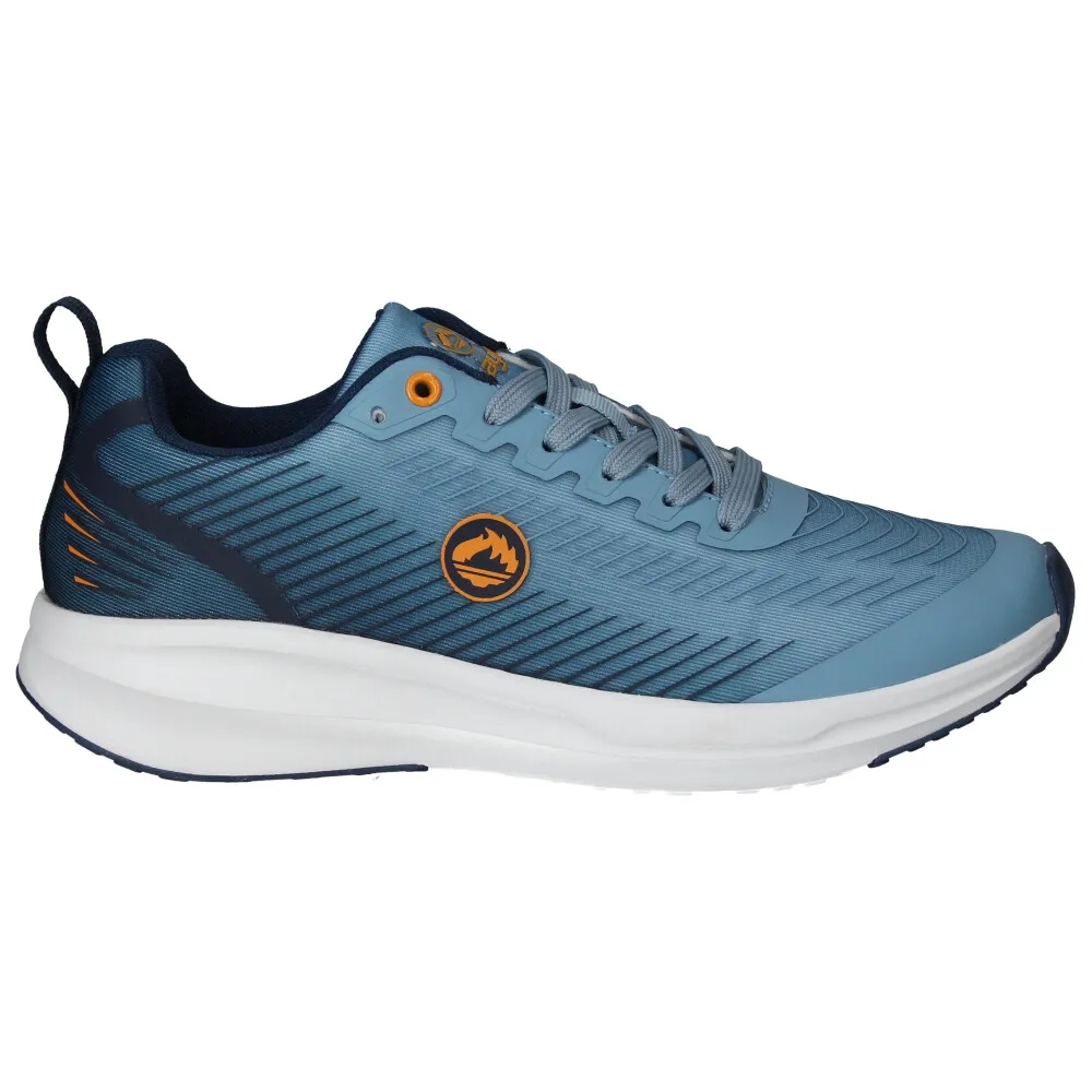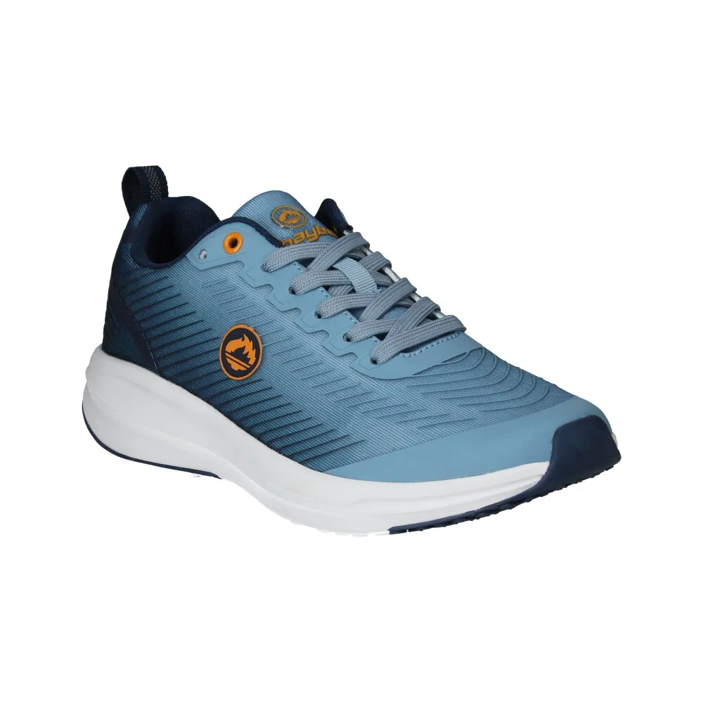 Las zapatillas de running para hombre de color azul combinan ligereza y comodidad en un diseño atractivo. Confeccionadas con rejilla para una mejor ventilación y cierre de cordones para un ajuste perfecto, estas zapatillas son ideales para cualquier rutina de ejercicio. El logo en naranja aporta un contraste vibrante que destaca sobre el fondo azul, haciéndolas fáciles de combinar con tu ropa deportiva favorita.