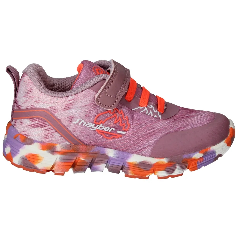 Deportivos en color rosa y naranja diseñadas para ofrecer comodidad y estilo a los más pequeños. Su corte es transpirable para una mejor ventilación del pie durante su uso. El cierre adherente y las tiras elásticas del empeine, hacen que sea muy sencillo de poner y quitar, y cuenta con refuerzo en la puntera para mayor resistencia. La suela de EVA ligera mejora la amortiguación en superficies duras, absorbiendo el impacto de la pisada. Destaca por su diseño en colores vibrantes y llamativos.