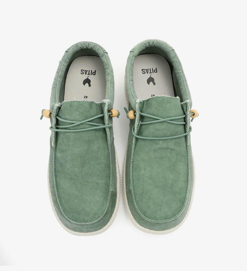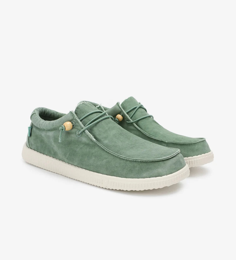Fabricados en algodón 100%, fresco y traspirable y su intencionado efecto desgastado, con leves diferencias de color y ligeras arrugas en el corte, hace que cada par sea único e irrepetible y en ningún caso debe considerarse un defecto de fabricación.