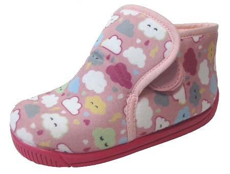 Botita Casa con correa, exterior de poliester, planta de poliester y suela de caucho natural vulcanizado.