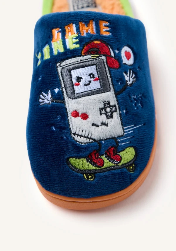 Zapatillas de estar por casa de pelo con dibujo gamer. Cuentan con suela antideslizante y planta acolchada de pelo. Tipo de producto: zapatillas de estar por casa. Composición:
