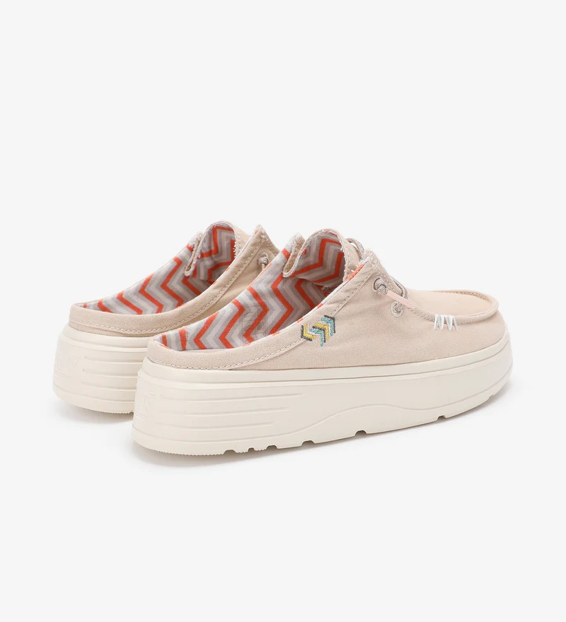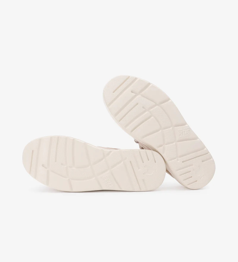 El zueco CAPARICA combina el icónico corte wallabi de algodón transpirable y resistente con detalles bordados, con una ligera suela en EVA de 4,5 cm de grosor. El resultado es un estilo muy actual y cómodo, de ligereza absoluta y total confort.
