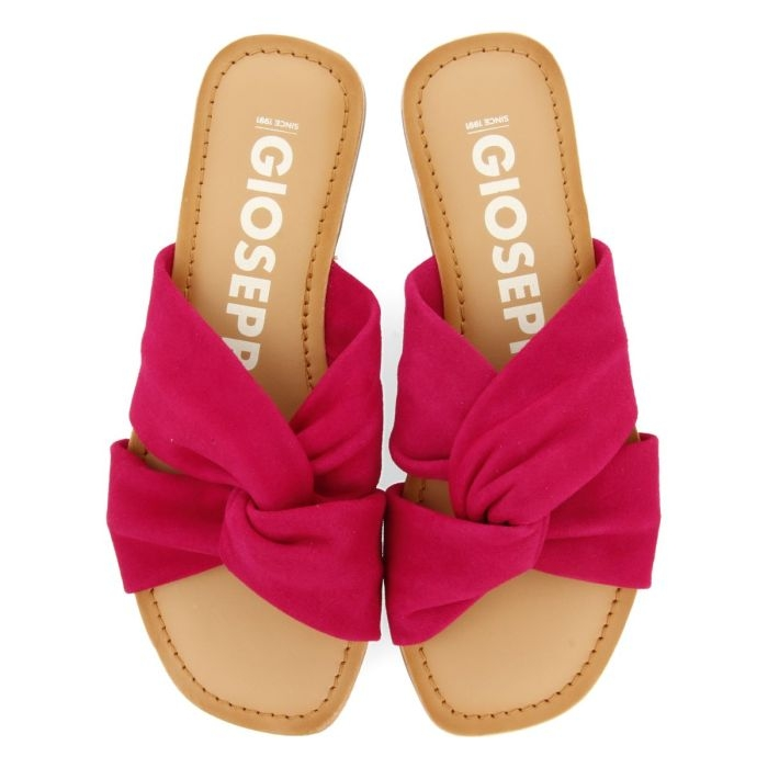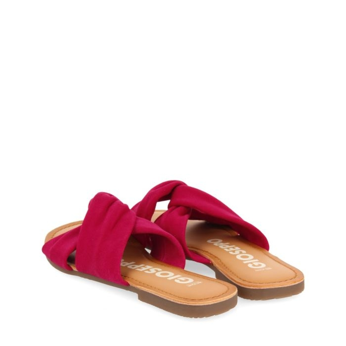 Tus inseparables del verano. Sandalias estilo pala de piel color fucsia con pala cruzada.