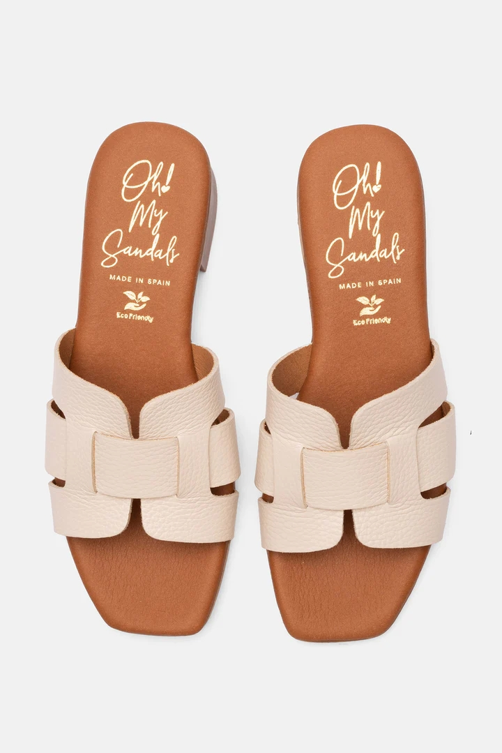 Sandalia de mujer con tacón en color hielo. El modelo Ingrid está fabricado en piel con un suave grabado y detalle de tira entrelazada en la parte delantera para hacerlo más sofisticado y elegante. Su plantilla de microfibra transpirable hará que no tengas sensación de humedad en ningún momento del día. ¡Te sorprenderá su comodidad!